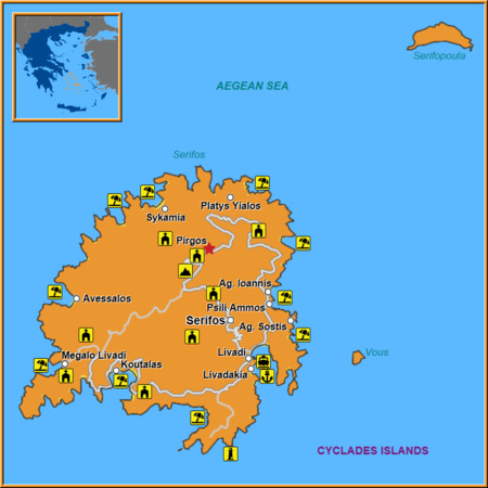 Serifos Chora – The island’s capital lies about 20 minutes by car; here you’ll find bustling markets, historic architecture, and vibrant nightlife.